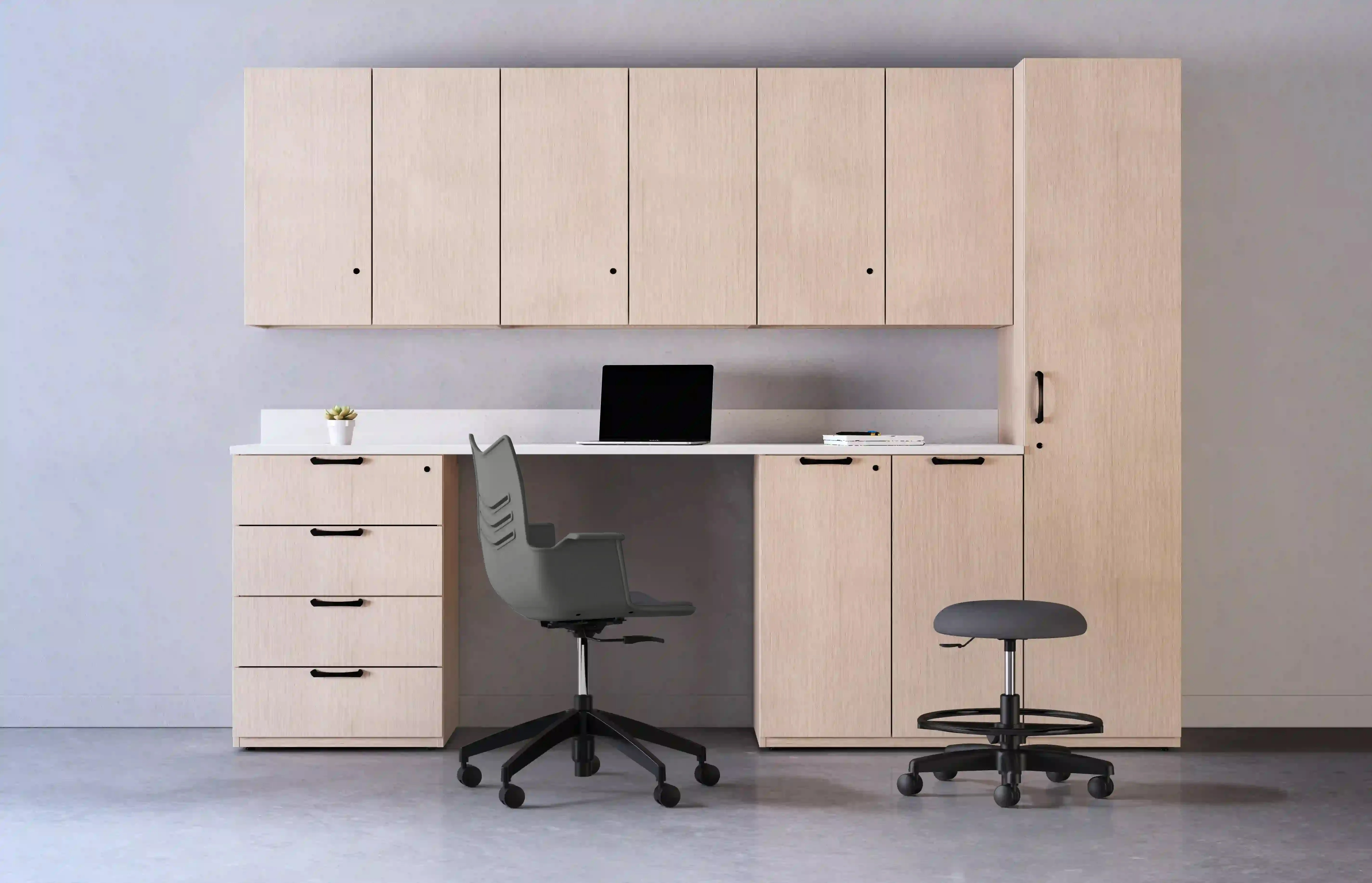 WaveWorks offers storage components to achieve premium performance in private offices, open plan spaces, reception areas, filing and storage alcoves, or other work zones. With a variety of sizes and capabilities, not to mention surface materials, pull options, and electronic locking features, WaveWorks has the options and configurations you need to create inspiring spaces.